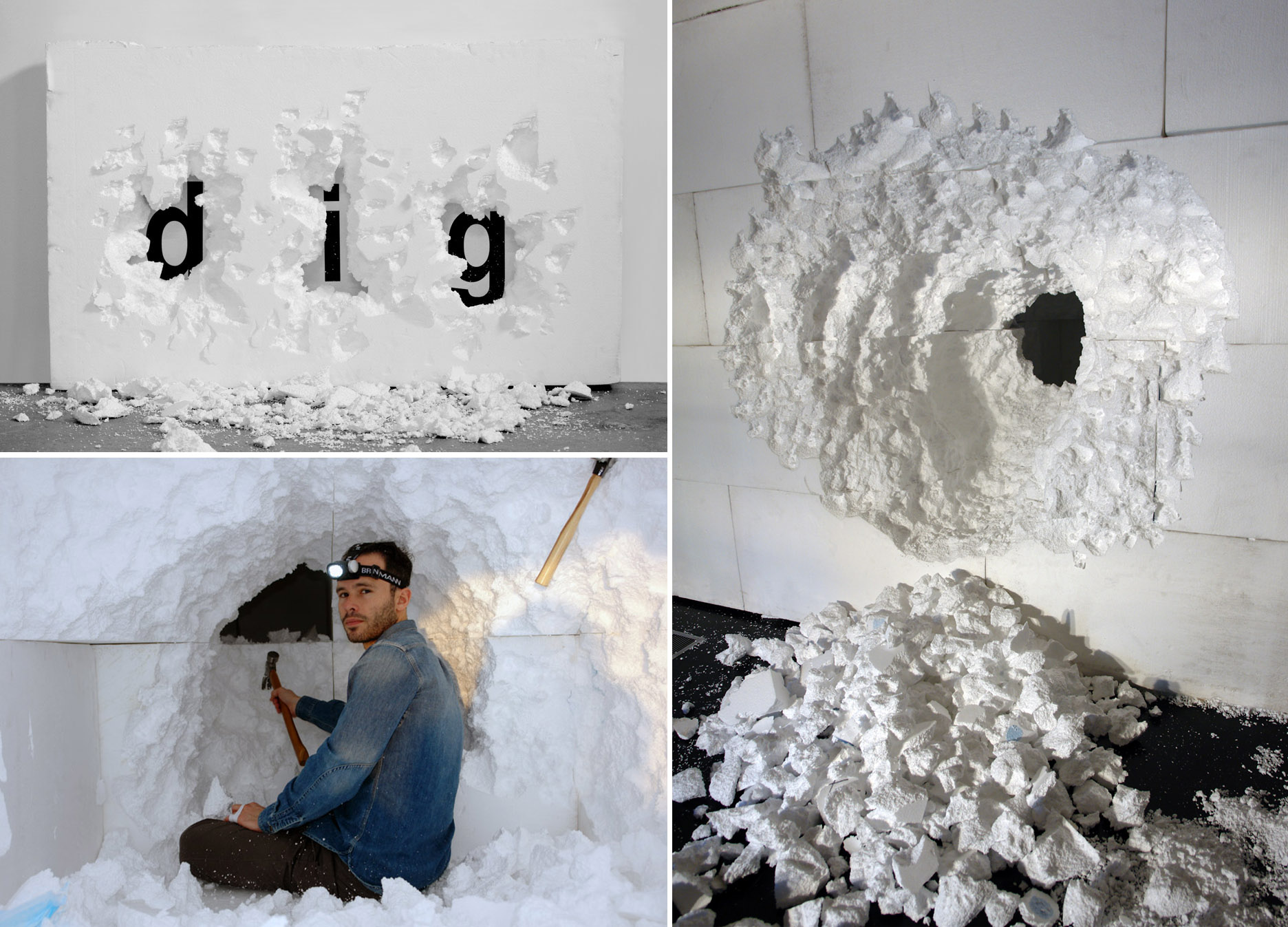 Installation. The gallery will be filled almost in its totality with EPS architectural foam, then excavated with simple tools to transform the material into an unexpected cavern. (March 29 – April 4)