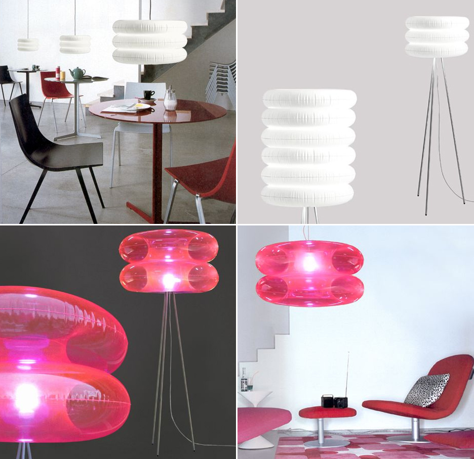 Made of PVC and inflatable, these lamps come in hanging, floor, table, and column variations. See them all here and some are available here.