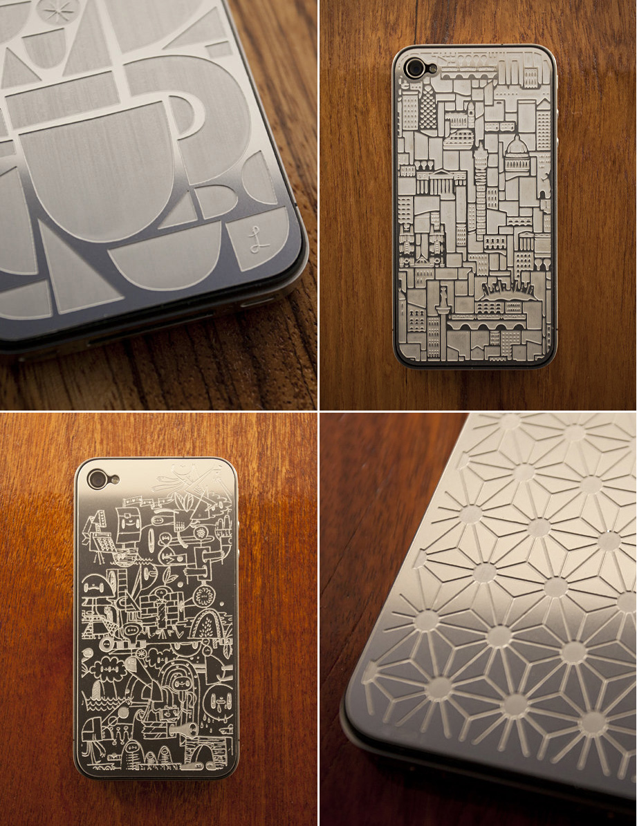 Luxe Plates are stainless steel covers that stick onto the back of the iPhone 4 with a special removable adhesive. The art on the plate is etched out with a photochemical process. Pick one of several designs created by featured artists or create your own.