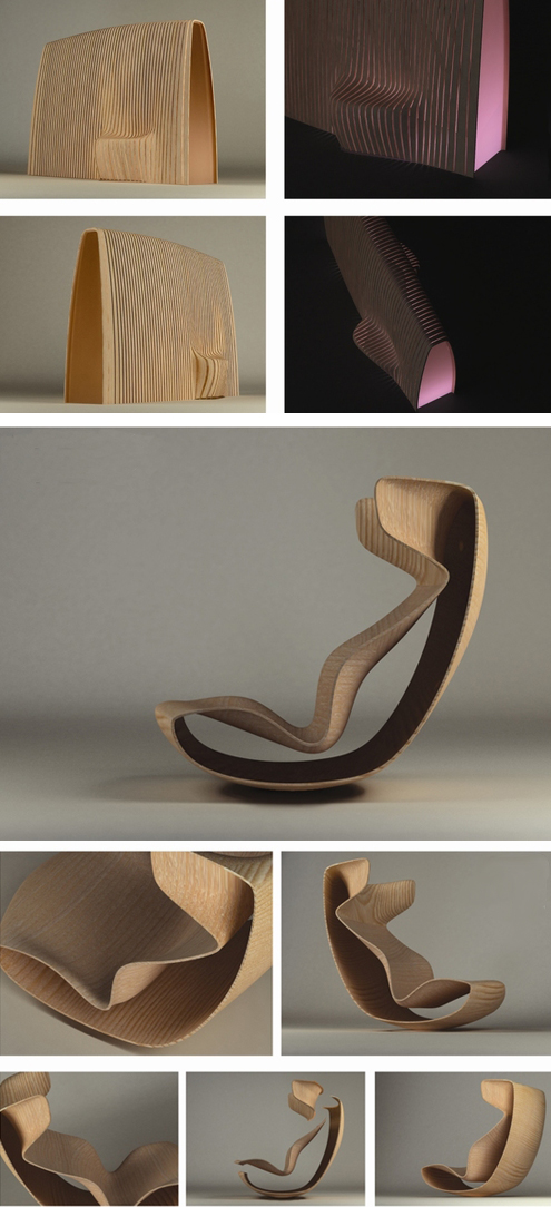 Diego Gutierrez Hermosillo is an industrial designer with several nice pieces in his portfolio. Two of these are the Zebra room divider and the Uno lounge chair. Both designed to be sculpted in wood.