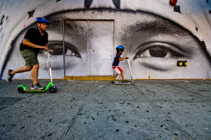 French street artist JR has hit the streets of New York City in full force this summer. With several murals up in downtown Manhattan and a series of smaller posters up in the Bronx, the closely cropped expressive faces and eyes are a fun surprise to see as you round the corners of NYC.