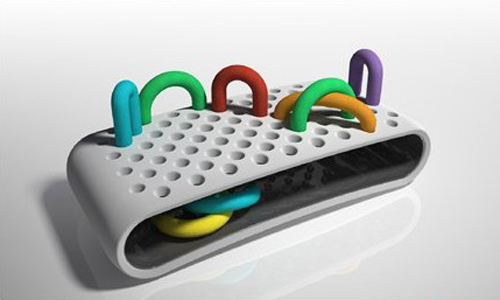 Here’s a very fun couch for the right room. The Punched Sofa designed by Serbian-born and Canadian-based designer Danilo Cvjetkovic, is an “interactive” sofa. The bendable plastic bars are covered with soft foam and colorful fabric (they remind me of those pool noodles) and get inserted into the punched holes of the fiberglass shell base functioning as the backrests. Different heights and angles are possible and adjustable by the user. Manufactured by Furnituredesignmarket.com in Norway.