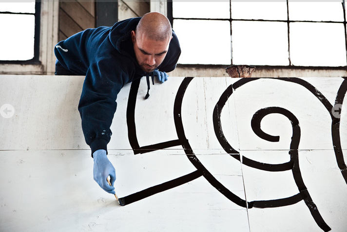 Illustrator, street artist, graffiti artist, designer Aaron De La Cruz started drawing on everything, including the walls of his bedroom, from a very young age. Much of his street art appears in California, from L.A. to San Francisco. His work, “though minimal and direct at first, tends to overcome barriers of separation and freely steps in and out of the realms of design, graffiti, and illustration.”