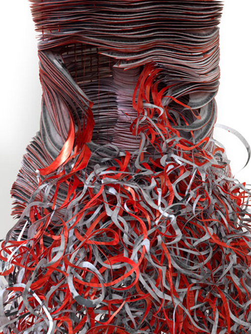 In her work, Oliver experiments with the power of a wound, scar, and dissection to bring forth political issues. She works with materials that range from laser-cut acrylic, to foam rubber, to shredded cardstock.