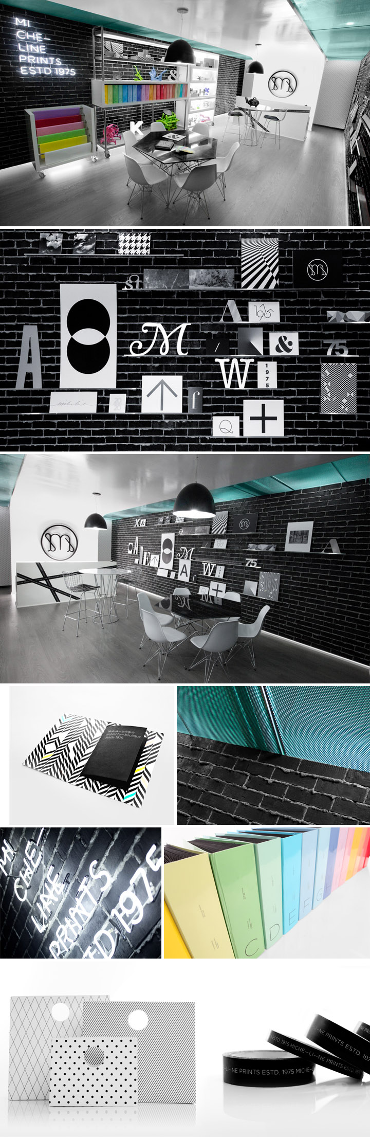 Mexican design firm Anagrama, specializing in identity and brand consulting, rebranded the boutique print shop Micheline, from their logo and packaging to the interior of their shop. In order to express uniqueness, elegance and modernity and keep the flavor of the mid 70s when Micheline was founded, Anagrama played up the 1975 year typographically in the decor as well as through the furniture and lighting selections. The color palette was kept neutral to contrast with the bright colors of the card catalogues and papers. Nicely done!
