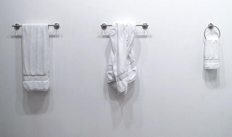If you follow this blog you may be thinking “MORE realistic stone sculpture??” And the answer is “Yes.” What can I say, I get a kick out of it and am impressed by the skill. I was walking by Washington Square Park today and happened to spot these marble towels through the window of 80WSE a New York University gallery. They made me smile. The draping is so well done and having placed them on towel racks made them all the more trompe l’oeil-ish. I went in, got the artist’s name and googled him out.