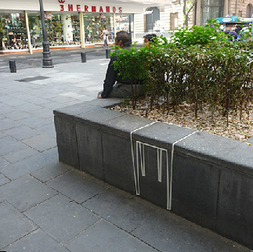 When one live in a city where urban furniture is not a priority, one finds that its inhabitants get creative and improvise by using different constructive surfaces as furniture. Insinuated furniture project is an attempt to call attention to these potential surfaces by drawing silhouettes of recognizable furniture over them.