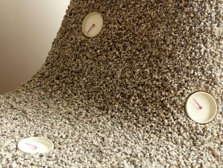 Tokyo-based designer Shinobu Koizumi describes himself as someone who “Proposes unique ‘experiences’ as spaces, furniture, and products.” His most recent creation is the Eternal Chair, made of stone and embedded with multiple glow-in-the-dark clocks with a single second hand each that tick away. As everything decays with time, the decorative clocks are there to remind us that nothing is eternal…not even a stone chair.