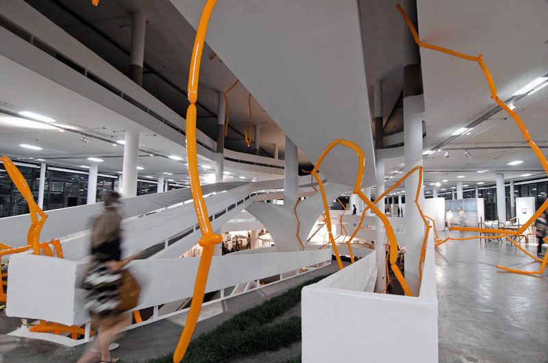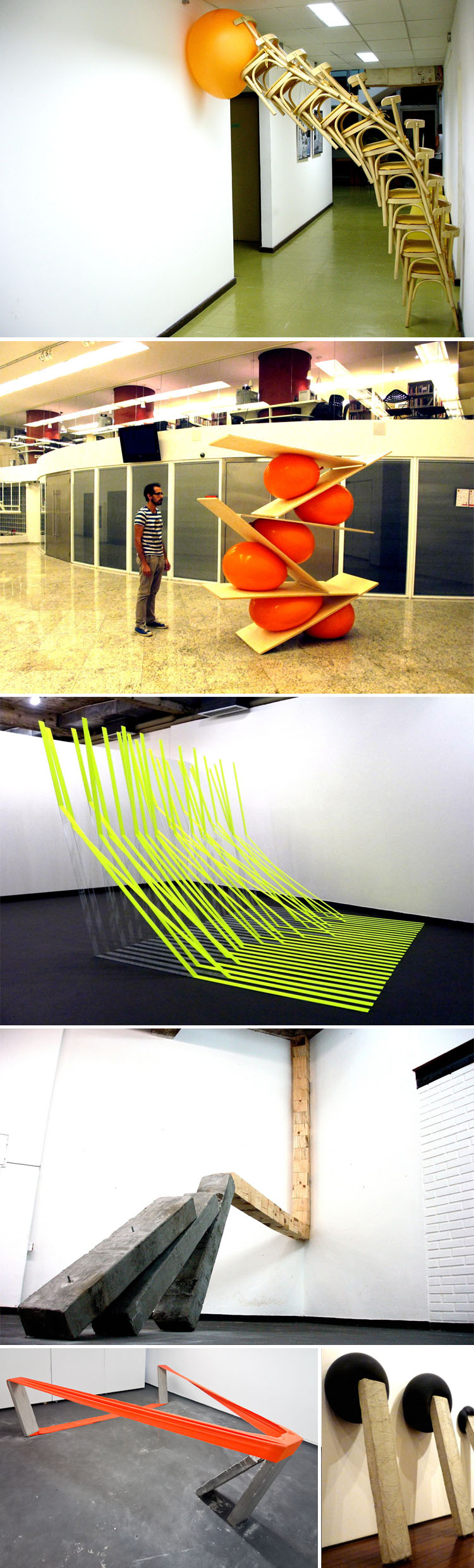 Looking at his work, a person might not want to get too close to one of Brazilian artist Túlio Pinto’s sculptures or installations. Concrete slabs precariously balanced and held in position by a piece of fabric or balloon doesn’t inspire a lot of confidence, yet they definitely impress.