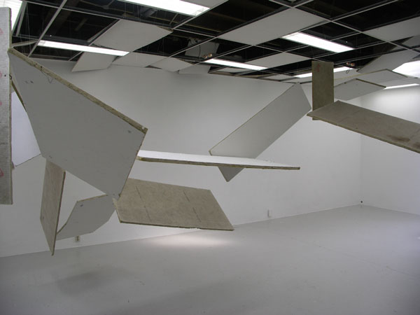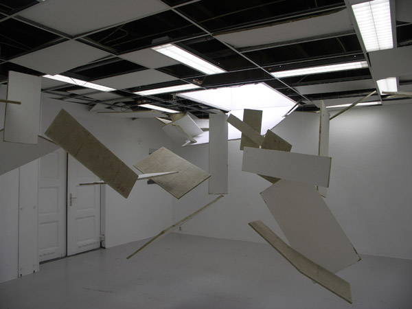 Dutch artist Remon de Jong created this collapsing ceiling art installation titled Tremor Laquearia. Fixing time in the way a photograph does, the installation takes the familiar and turns it upside down.The chaos completely changes the perspective of the gallery space.
