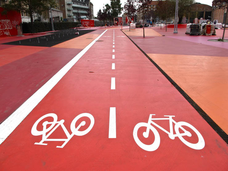 I wonder how slippery those bicycle lanes get in the wet though.. that’s a lot of paint. Nonetheless, great design, just doesn’t look as functional as it could be