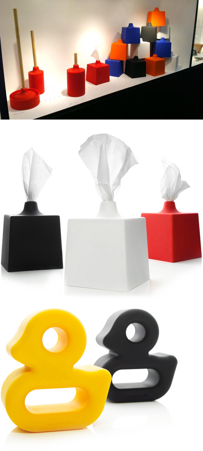 Also fun on the Kontextur site is the Duck Harry which functions as a toothbrush/toothpaste holder, or alternatively as a doorstop. I think it would be fun right by the bathtub as well; an updated rubber ducky.