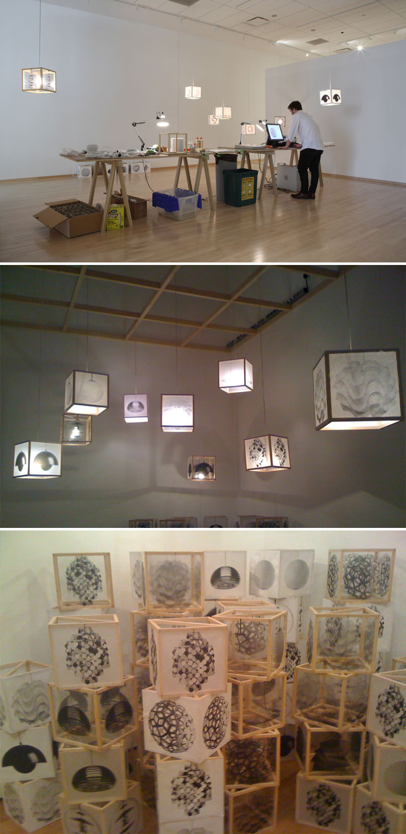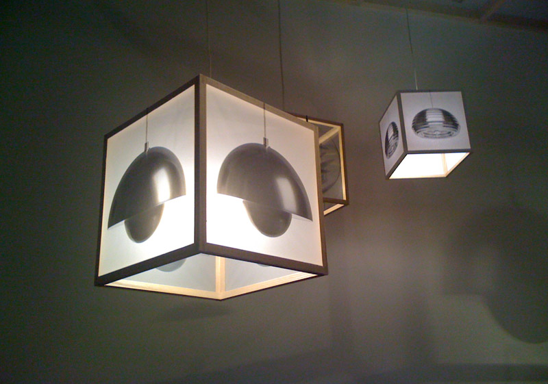 After going through Cindy Sherman’s (the queen of ‘selfies’) new retrospective at the MoMA this past Saturday—an interesting show in itself—I made a quick loop through their other major exhibit next door, Print/Out. Though met with mixed criticism, I have to say, it’s hard for me not to like rooms filled with colorful contemporary graphic prints, posters and books, much of which involve typography, so, I was pretty pleased. But one project that stood out was Danish design studio Superflex’s (coincidentally one of the collaborators on the previously mentioned Superkilen Park in Copenhagen) Copy Light Factory. In this workshop (I was there during non-workshop hours) lamps are created by copying images of well-known lamp designs onto translucent paper and then attaching them to wooden cubed frames. Here is how their website puts it: