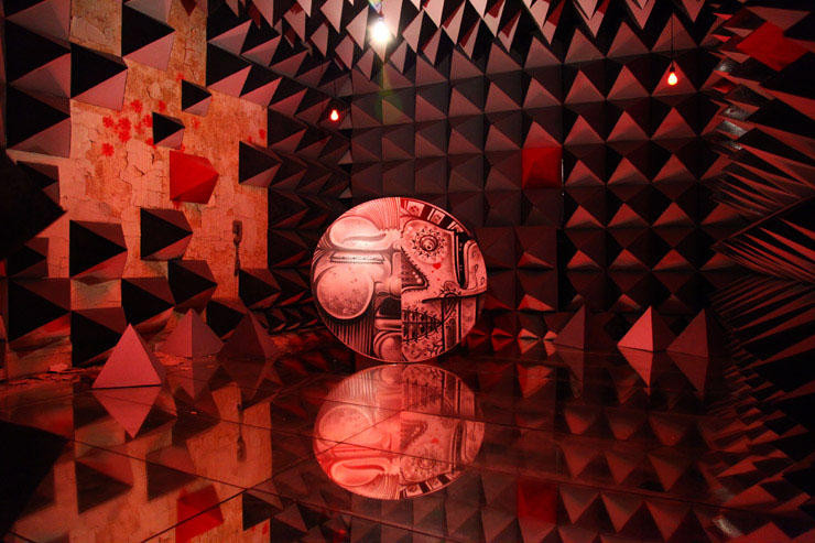 Many of the artists included are well known graffiti artists such as Crash, Daze, and How & Nosm who have each taken one of the rooms and are bringing them to life. There is a bit of irony in the choice to invite street artists to revitalize the grand mansion when its decline coincided with the rise of Bronx graffiti in the 70s and 80s, but there are also parallels which the curator points out: “…the role of the artist rising from the ashes of the burned-out neighborhoods then and an art show in the decay of this home now.”