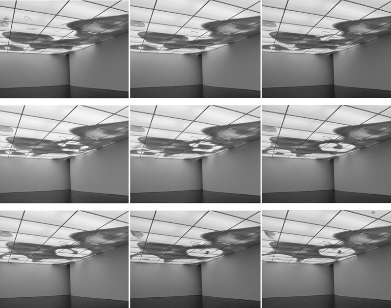 Brazilian artist Rivane Neuenschwander is known for her poetic-styled installations. Currently on display at the Museum of Contemporary Art in Sydney, is her previously exhibited piece titled Continent-Cloud. Composed of a polypropylene lining that supports small styrofoam balls which occupy the entire gallery ceiling, the balls are moved around by hidden fans creating changing forms in constant movement. The way these forms rearrange themselves is evocative of clouds moving across the sky, while at the same time some of the solid masses are also reminiscent of land formations on the globe, hence its title.