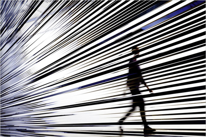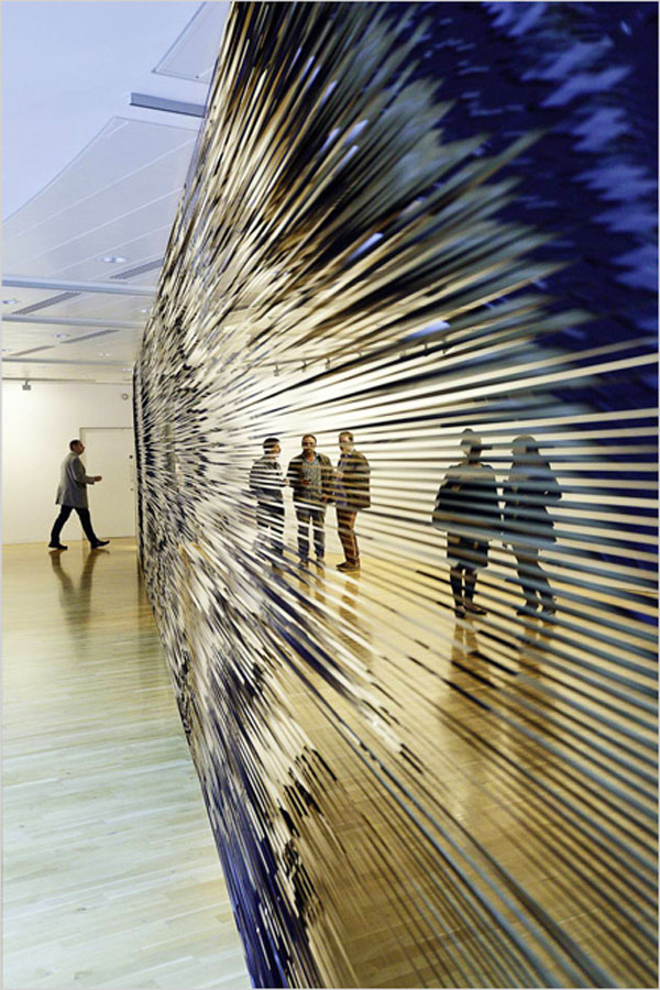 Also interesting are his sculptures made of layers of black nylon monofilament creating both abstract three-dimensional structures as well as image-based ones that appear photographic.