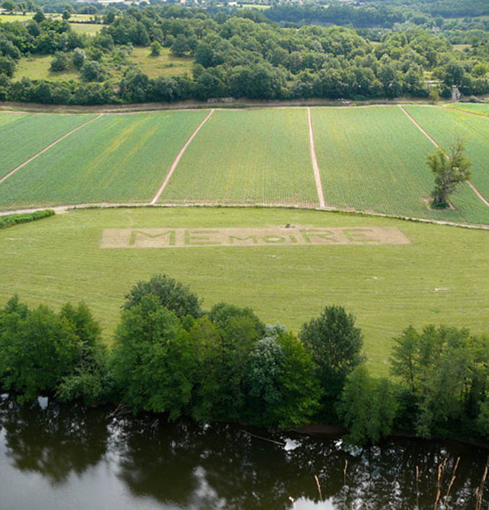 French artist Jean Daviot works in a variety of mediums including painting, photography, video, and installation art. Throughout, he plays with aural and linguistic analogies. In his installations he is particularly interested in wordplay; in seeing words and type as shapes and then in essence dissecting them and seeing the words within the words. For example: MEmoiRE (memory), a word he uses in several installations, contains the letters M-O-I (self) inserted between the word MERE (Mother). He likes to take the words literally and then turn them upside down.