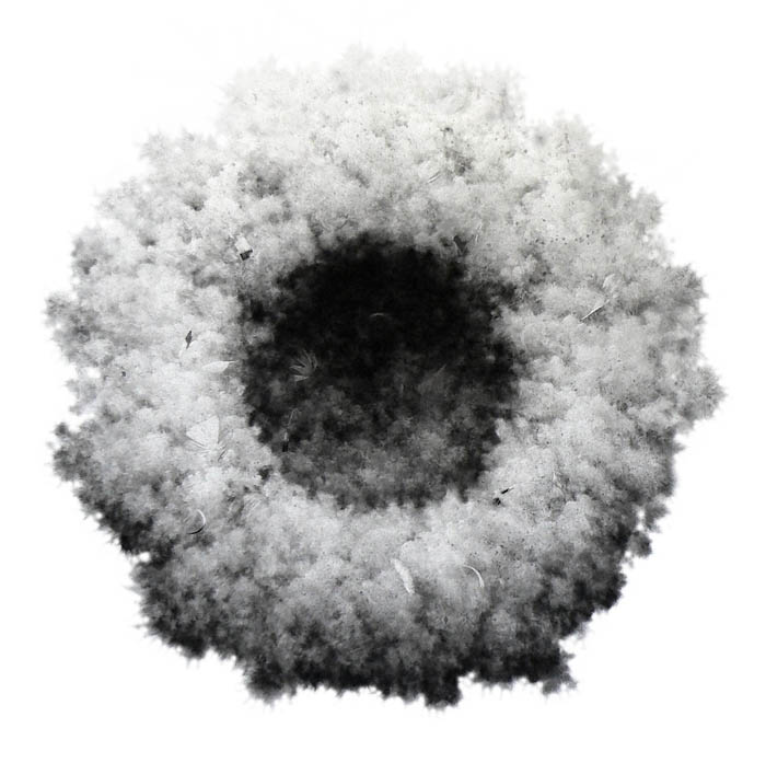 Yes. Drawings. London artist Jonathan Delafield Cook gets his inspiration for his remarkable hyper-realistic charcoal drawings on paper and canvas from nature. His attention to detail makes these works look almost photographic. He plays with scale by enlarging his subject matter, whether it be birds’ nests or bulls. Pretty amazing and beautiful, to boot.