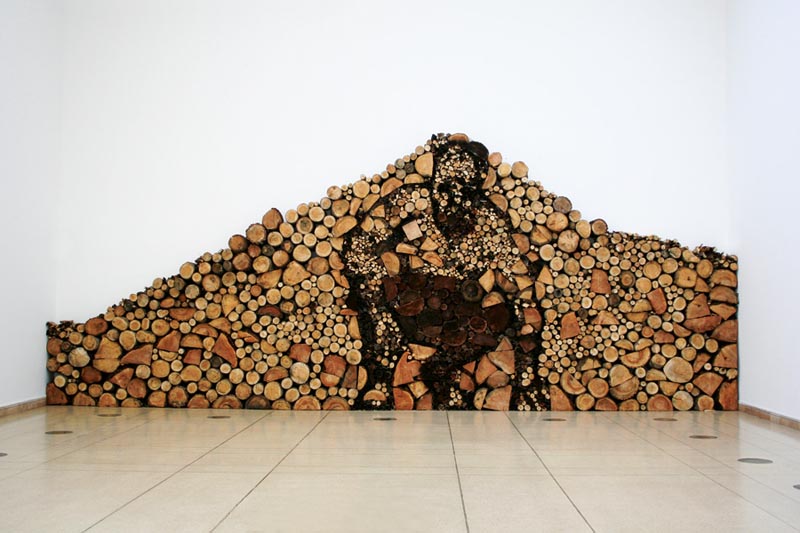 Hungarian artist Gyula Várnai (previous post) also created this installation titled Now I Know, for the What’s Up? Hungarian Contemporary art exhibit in 2008, using logs and branches of different sizes and wood colors, illustrating a crouched man in the center of the pile. This kind of thing always amazes me.