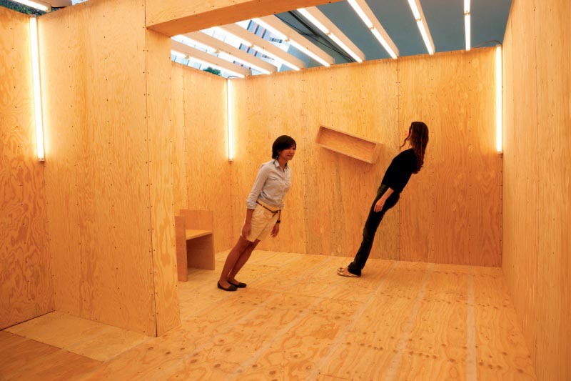 cool installation, tilted box installation hard to stand in, dizzying, DH#2, Harris Lieberman Gallerycool installation, tilted box installation hard to stand in, dizzying, Demon Hill and DH#2 by Julian Hoeber, Harris Lieberman Gallerycool installation with funhouse effect, gravity-defying installation, Demon Hill, DH#2 Julian HoeberClick to enlarge
