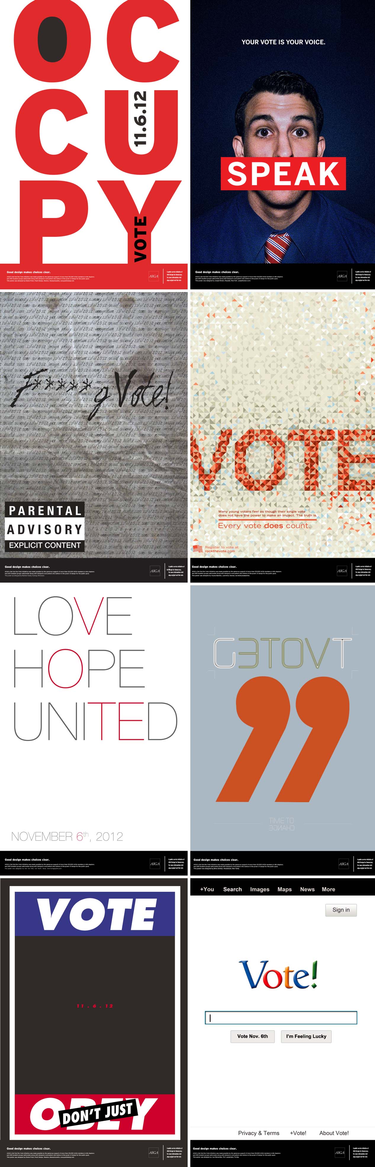 AIGA’s (American Institute of Graphic Arts) Get Out the Vote project invites designers to create nonpartisan posters and videos that inspire the American public to participate in the electoral process and vote in the 2012 general election.