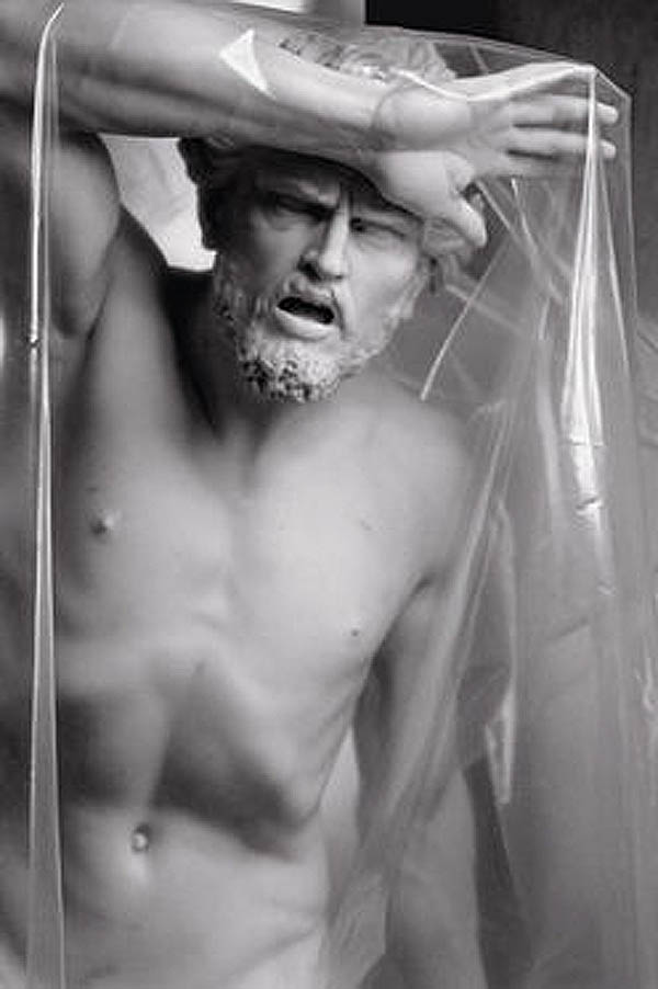 Yuri Maldkovets is a Russian photographer based in St. Petersburg. He has photographed more than 120 catalogs and albums for the State Hermitage Museum, with access to its art. In his exhibit titled New Hermitage, Malodkovets hung large black and white photographs of classic 19th century Italian marble statues wrapped in polyethylene for storage. The plastic wrap acts as a graceful veil, sculptural in its own right. The statues seem to grimace at having the plastic on them, as if trying to escape. And the series of busts smothered in the same material are a little disturbing but add an interesting quality as well.