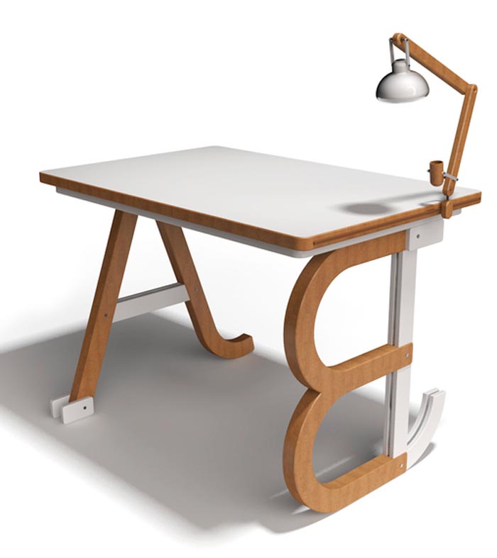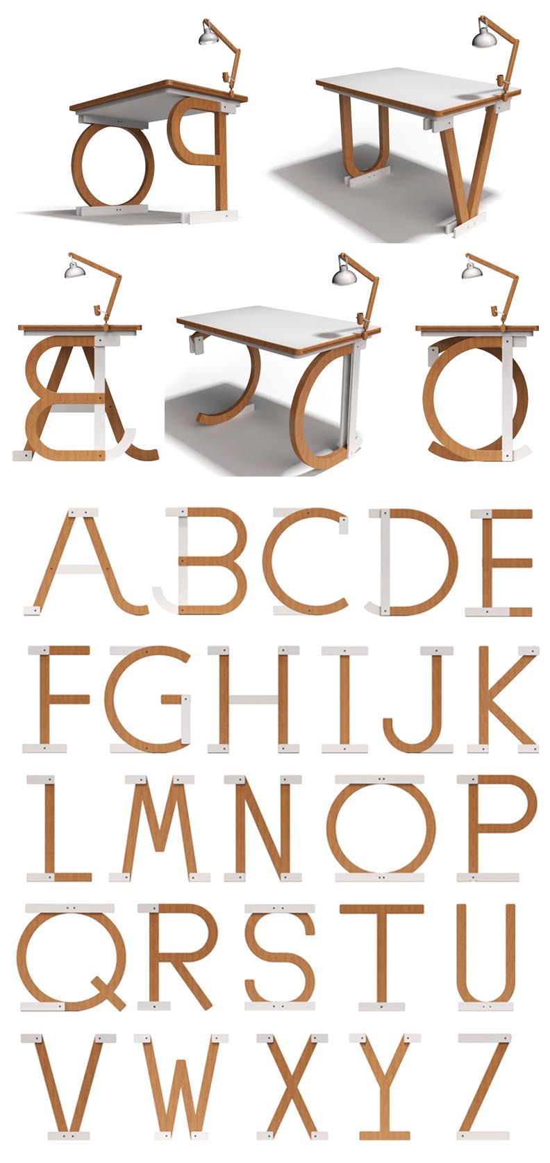 Listen up all you type lovers! How does a desk with your favorite letters of the alphabet, or maybe your initials, as its legs grab you? Romanian graphic designer Liviu Avasiloiei, now living in Washington D.C., has a design in the works making it a reality. So smart and clever! Even the lamp has been integrated into the design. I think Ikea needs to get in touch with Avasiloiei ASAP…
