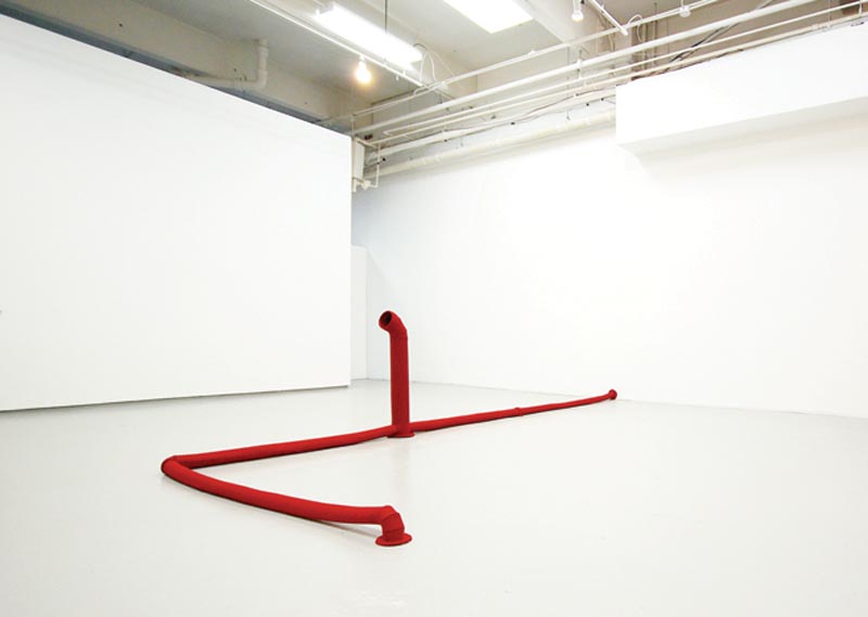 Chilean artist Johanna Unzueta, now living and working in New York, uses felt as a sculptural material to build structures and objects that bring attention to the history of labor. Increasingly interested in site-specific installations that engage with the space,Unzueta has been constructing pipes that go in and out of corners, or ladders that lead to an imaginary attic. It would be fun to have that oversized felt hinge as an area rug.