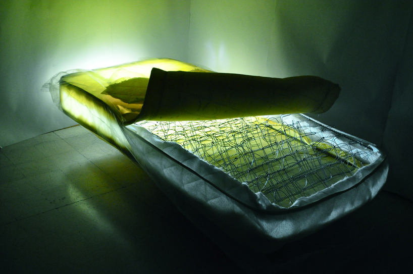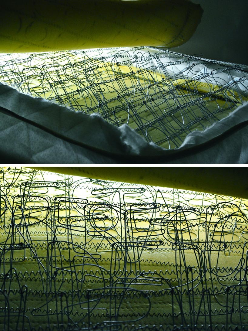 This installation caught my eye. La Chaleur de L’amour & la Beauté des Paroles (The warmth of love & the beauty of words) was created by Jad Melki, assistant professor of journalism and media studies at the American University of Beirut as well as visiting Faculty at Johns Hopkins University in Washington, DC. Melki’s piece represents presence in absence. Using an exposed mattress and warmly lighting it to make it glow, Melki converted its inner springs into words and sentences extracted from letters written by his mother when she was in Sierra Leon in 1974 to his father at the American Univeristy of Beirut. His father read the letters nightly, finding warmth and comfort in them and, in turn, feeling his wife’s presence in her absence. Nice.