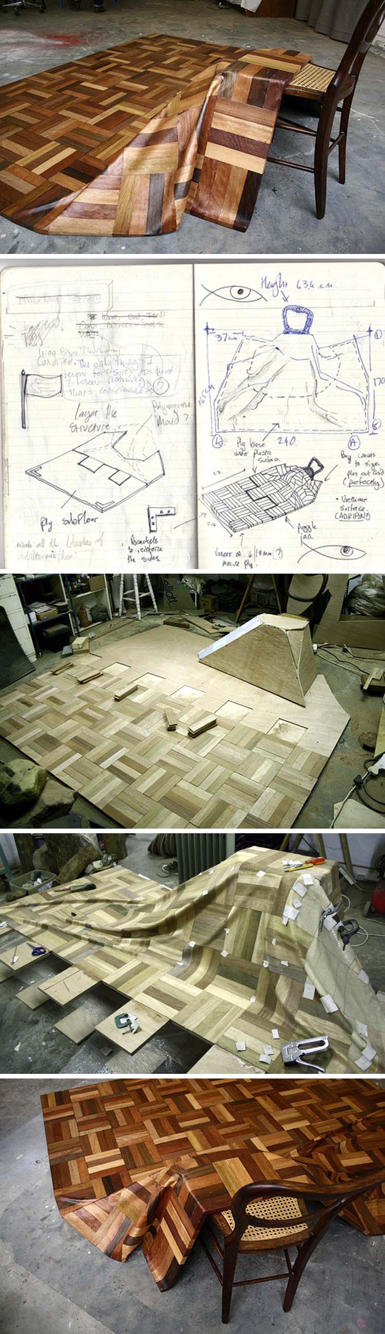 It’s probably hard for Daniella Mooney’s wooden (or is it?) sculpture Parquetry not to illicit some sort of reaction from a viewer, whether it be a smile or an expression of confusion. The South African artist’s sculptural work consists mostly of natural materials such as wood, stone, moss and crystals, with meticulous detail in their crafting as can be seen above in the process photos of Parquetry and in more detail here. Mooney tends to explore themes of alchemy, magic and natural phenomena and I’d say this piece is pretty magical.