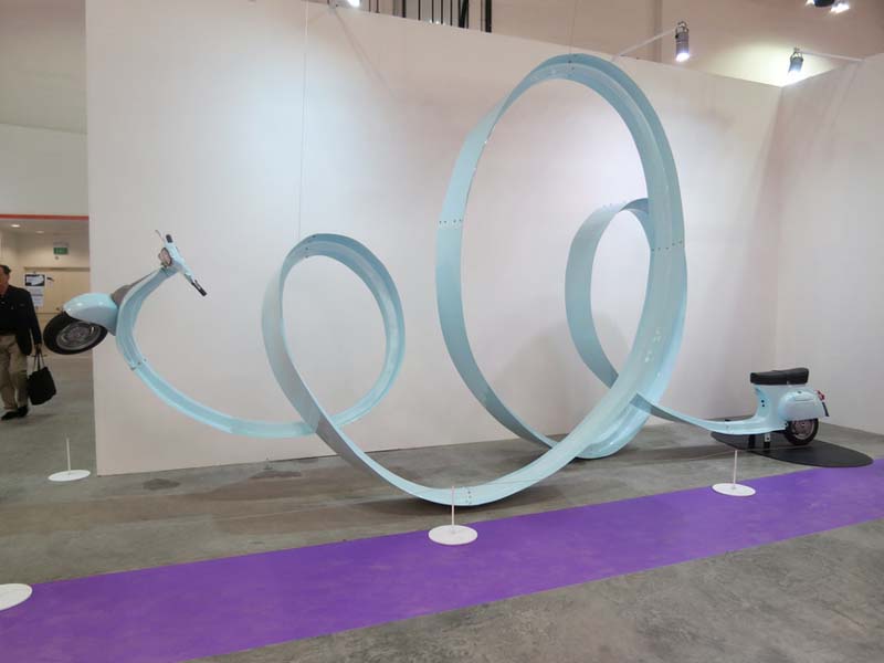 Indonesian artist Eddi Prabandono is probably most known for his giant sculpture made with 25 tons of special clay of his daughter Luz’s head for the 2011 edition of the art exhibition Jog Art, known as the “Luz Series”. However, other works include smaller scale sculptures often made with shovels, bicycles, skateboards, and more recently a multi-looped vespa at Art Stage Singapore.
