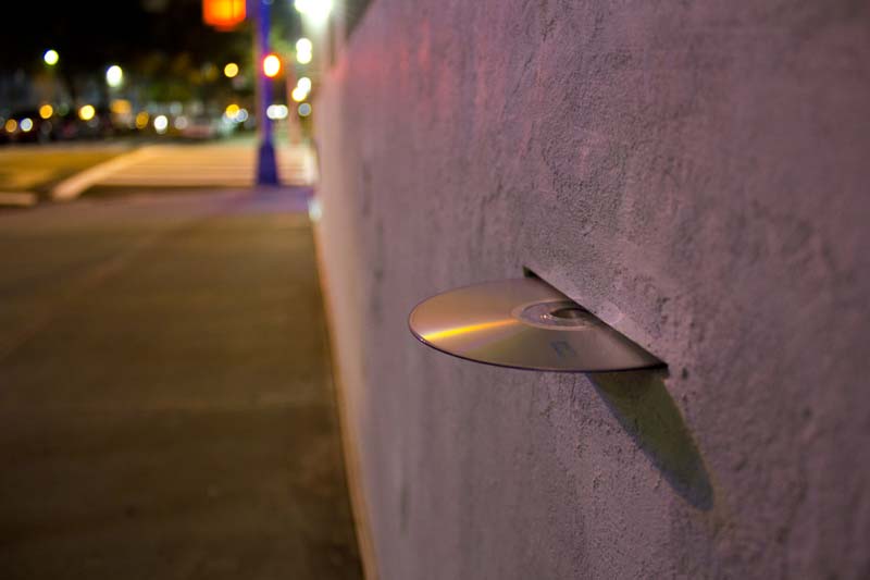 I am so disappointed that I didn’t know about this when we were at the Museum of Moving Image last August. It seems that Berlin artist Aram Bartholl, who combines technology and art to create participatory works, was commissioned by the museum last summer to create a permanent installation on the side of the museum. DVD Dead Drop consists of an embedded slot-loading DVD burner on an exterior wall of the building, available to the public 24 hours a day. Visitors can insert a blank DVD-R and receive a digital art exhibition, a collection of media, or other monthly curated content, burned onto their disc. DVD Dead Drop is a continuation of Bartholl’s series of offline file-sharing networks in public spaces. Other Dead Drops consisted of USB flash drives cemented into walls and curbs encouraging a ‘read-write’ information ecosystem while the DVD version is ‘read-only’. You can follow the different content offerings over here, and see the video below for a demonstration of the process by the charming Bartholl himself.