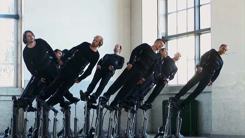 Their Pendulum Choir is probably the most surprising. A choir of nine men is harnessed onto hydraulic jacks that react to their voices. The swinging and rotating singers seem to hang by their toes while leaning at what look to be close to 45-degree angles, coming very close to each other yet designed to never collide. Kind of zany, funny, and at the same time a little creepy.