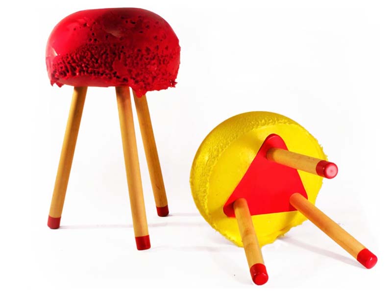 Daniela went to the RISD Senior ID Show last week and reported back with lots of exciting work and photos. We’ll be featuring some of these talented designers in the next couple of weeks, but first, here is an impressive RISD Furniture Design Senior: Jamie Wolfond. Not only are Wolfond’s designs super creative and fun, but his choice of materials are unusual and seem to be a lot about their feel and texture. The Lunar Stool (top two photos) is made with foam, while his Ball Ottomans are yoga balls whose shapes have been morphed by steel and air. The Emergency Bench is another clever inflatable object broken down to a mere three pieces. Make sure to check out Jamie’s site for more of his work as well as interesting videos documenting his process. And click on his name while you’re there, too.