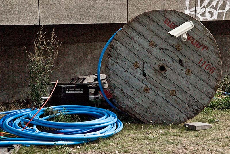 Spanish street artist SpY from Madrid creates interventions with a humorous surprise twist many of which include a cutting social and/or political edge. In his series For Security Reasons, SpY installed security cameras in the most unlikely places: pointing at a pile of bricks or garbage or even straight up at the sky. Other, less subversive, interventions include replacing the handset on a payphone with a banana, adding a multitude of diagonal lines to a tennis court, and painting a skate ramp to look like a soccer field. I would imagine he enjoys himself as much as anyone that comes across his work.