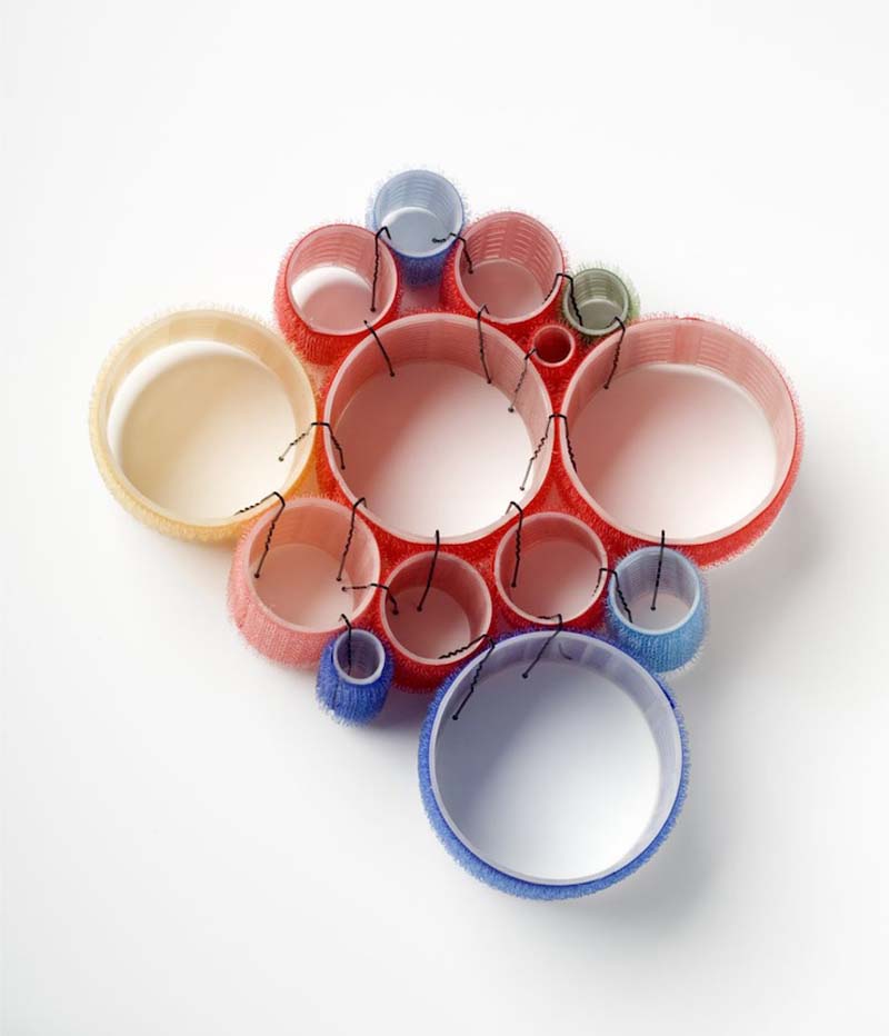 Last month at the Frieze Art Fair, I came across Swiss artist Sylvie Fleury’s piece Scratch, a small sculpture made with rollers and hairpins (or curlers and bobby pins) and the simplicity, as well as the fun choice of objects, made me smile. Fleury, based in Geneva, typically uses fashion and luxury products in her work. Her art, at first glance, may seem like an affirmation of our consumerist society but, if you look closer, it’s quite the opposite. Her series of Scratch sculptures is no exception, playfully using objects, in this case hair rollers, that focus on superficial beauty.