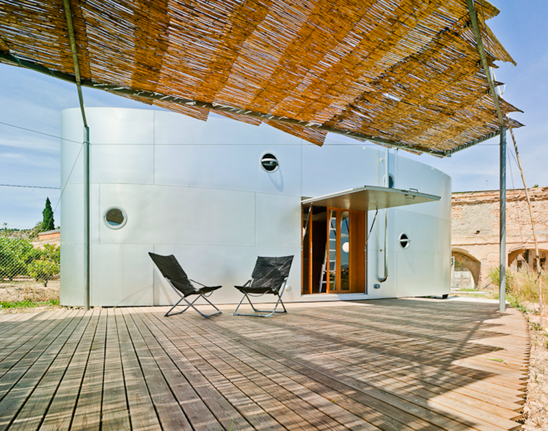 The Machine Home in Murcia, Spain, designed by adhoc ml, can be described as a cross between the traditional dwelling and the caravan. It is easily transportable and can be put up anywhere. All it needs is a minimal foundation and a connection to MEP installations, be these existing urban services or mechanisms making for the module’s total self-sufficiency: potable and irrigation water, plumbing and purifying systems, telecommunications lines and energy-capturing devices.