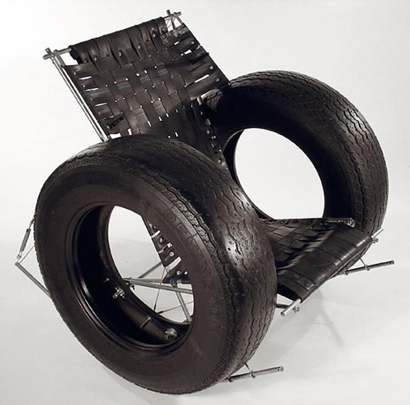 Last weekend we headed over to Bushwick Open Studios. Always a bit difficult to navigate due to the number of artists and studios that participate, as well as the sprawling nature of it, we were fortunate to find Hyperallergic’s Concise Guide and managed to hit a good amount of studios with interesting work. One of these was Rodney Allen Trice’s, an artist and designer who moved to NYC 25 years ago and needed to furnish his apartment on a budget, ultimately using found objects and “refitting” them into furniture. What might look like an old garden hose to the naked eye becomes an ottoman or a funky fashionable hat in Trice’s world. His tire rocker, having sat in one myself, couldn’t be more comfortable, and the crutches table, though maybe not my personal aesthetic, is definitely eye-catching and incredibly clever. But the designer doesn’t stop there, no siree. His company T.O.M.T. has been repurposing trashed and forgotten objects for years with the mission of object recovery and reassignment. He likes to call it “object career counseling” rather than waste-handling and he’s spreading his philosophy and technique not only through his work but via classes in his studio as well.