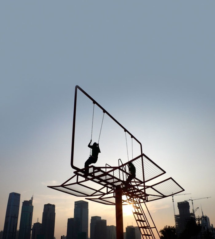 Designed by French-Portuguese architect Didier Faustino. Urban reanimation device. Recycled billboard space.Shenzhen-Hong Kong Bi-City Biennial of Urbanism and Architecture. via Broken City.