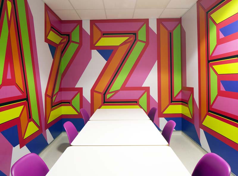 The boardwalk is still MIA but right away I noticed new, crisp signage clearly marking each beach name and street, as well as temporary concrete islands (designed by Sage and Coombe Architects) emblazoned with colorful supergraphics also displaying the corresponding beach numbers. Not surprisingly, I have since found out, perusing the Pentagram website, that the environmental graphics are the handy work of Paula Scher and her team of designers. Scher previously developed the identity and signage standards for the New York City Department of Parks and Recreation, which manages and maintains the city’s beaches, and the beach graphics are an extension of that program, utilizing the logo but changing the fonts and colors.